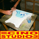 Pintada a mano con pincel y stencil, cada prenda es única.
